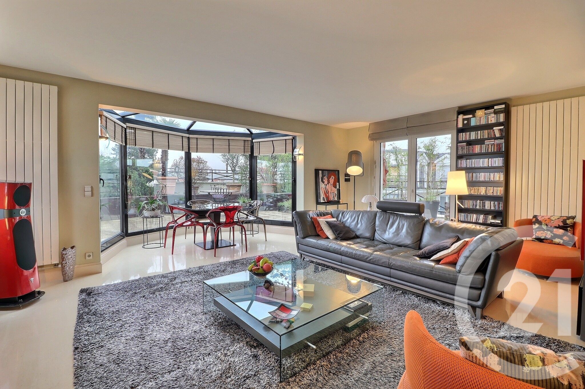 Entrée avec placard/miroir, grand séjour de 32,5 m² très lumineux, triple exposition Est, bow-window donnant sur la terrasse, sol en pierre italienne vitrifiée, isolation acoustique renforcée, bar intégré et éclairages modulables.