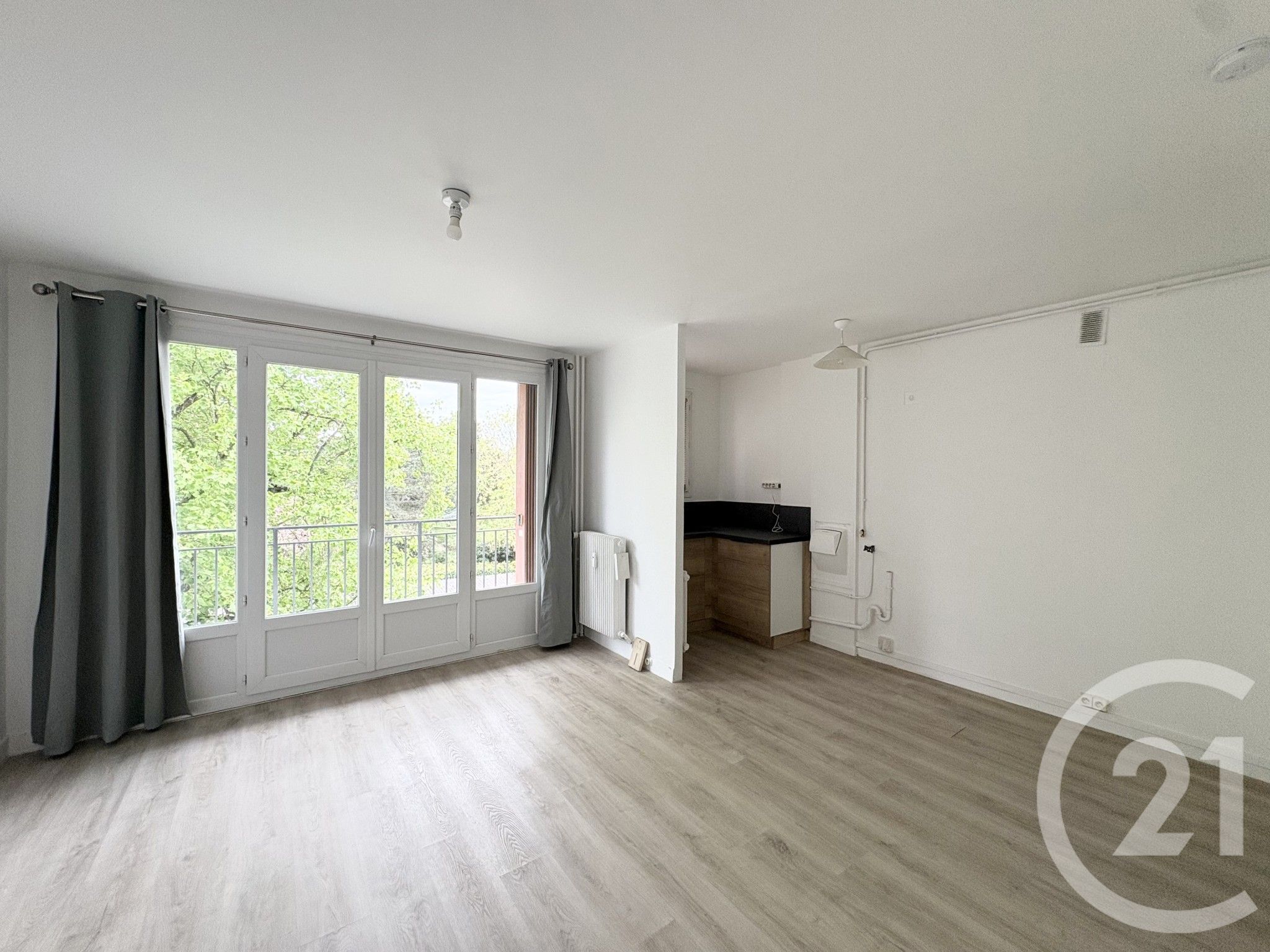 Il se compose d'une entrée, d'un séjour lumineux avec accès à un balcon, d'une cuisine ouverte, de deux chambres, d'une salle d'eau ainsi que de WC séparés.